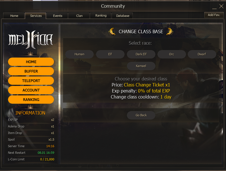 Players can change class using a Class Change Ticket, available from the L2 Store or by participating in events to earn a Premium Coin and purchasing it from the L-Coin Shop. (If a player is a hero, hero status will be lost).